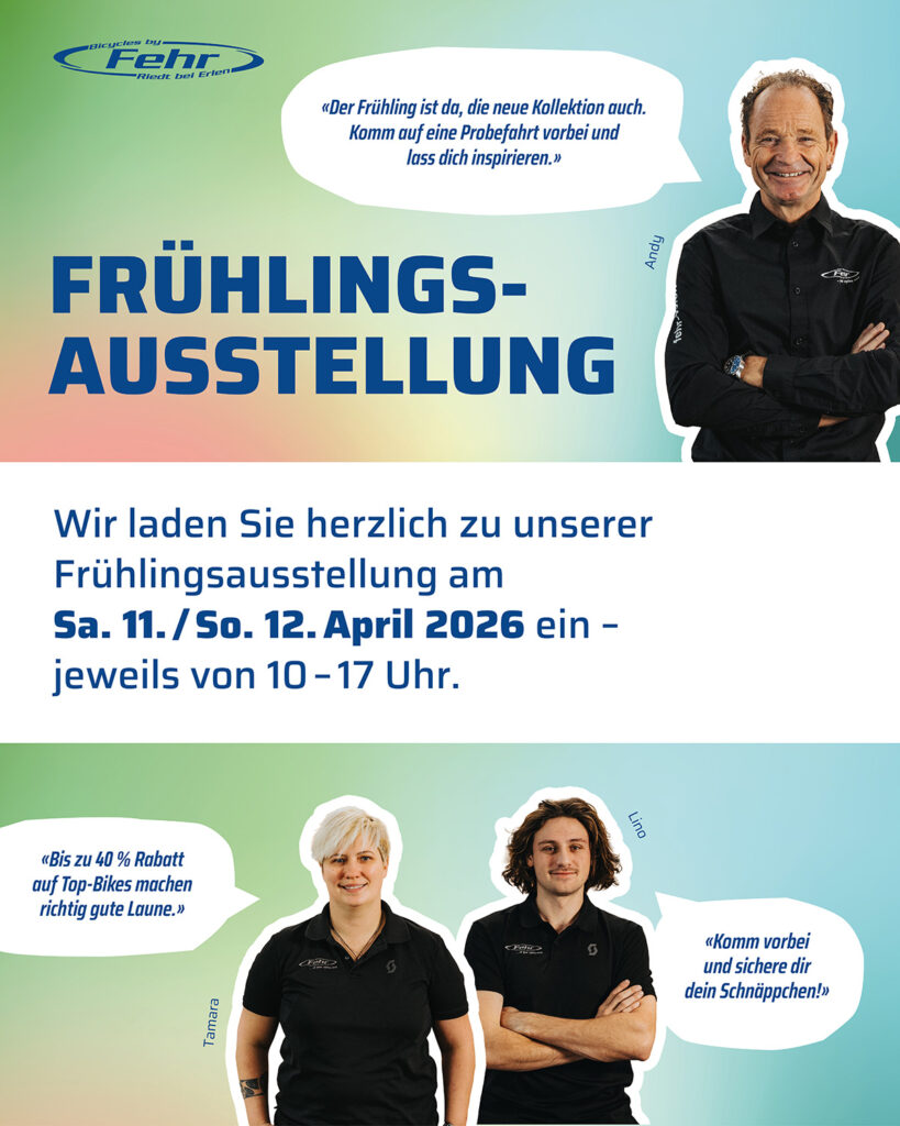 Am Samstag und Sonntag, 13. & 14. April 2024 findet unsere Frühlingsausstellung statt. Kommen Sie vorbei und profitieren Sie von diversen Rabatt-Aktionen!